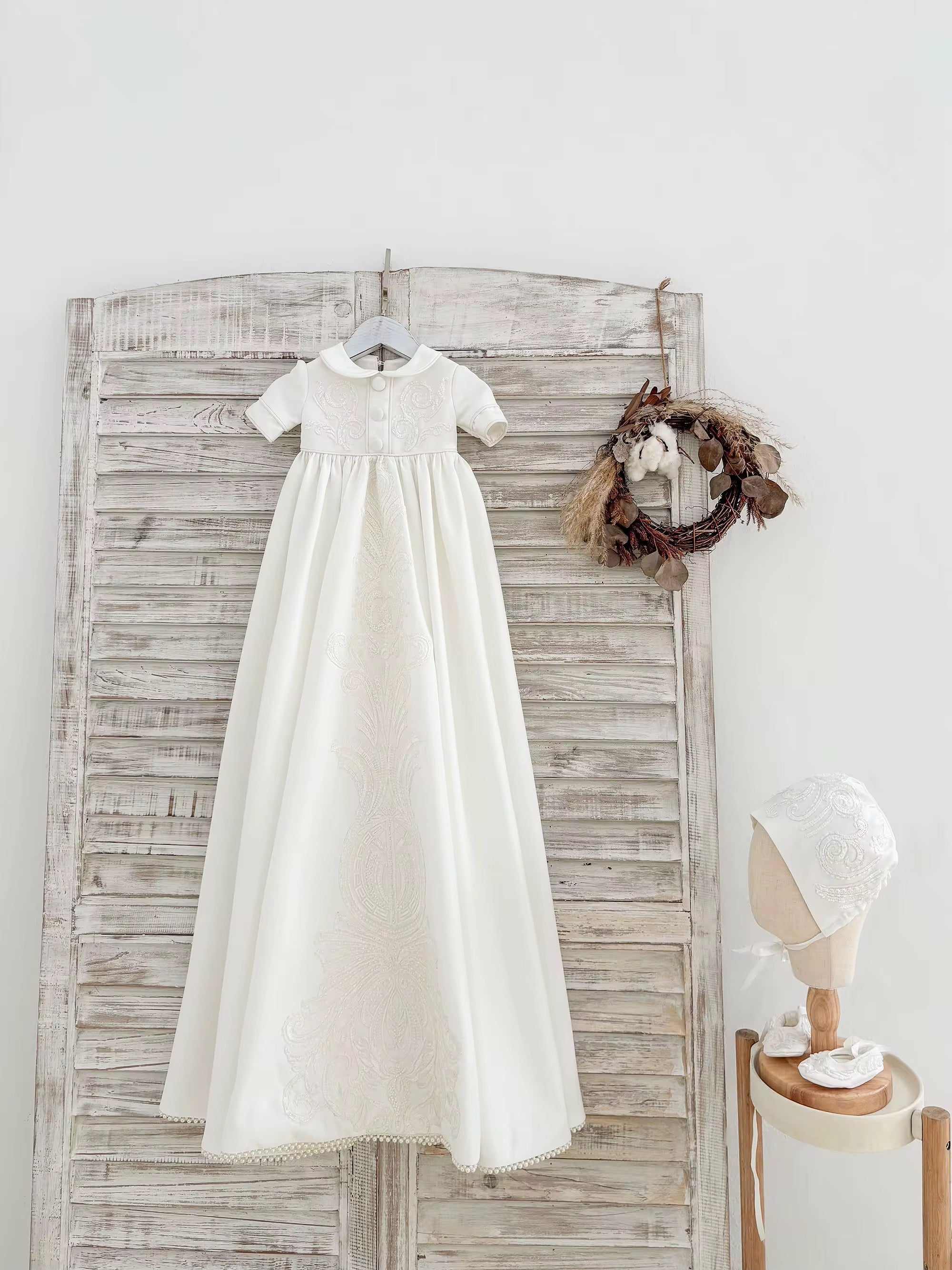 Designed to be worn, cherished, and passed down, the Aurelian is more than a christening gown — it is a timeless keepsake, capturing a moment that will be remembered forever.
