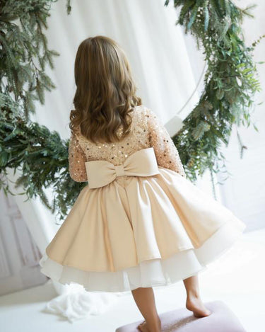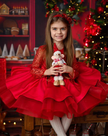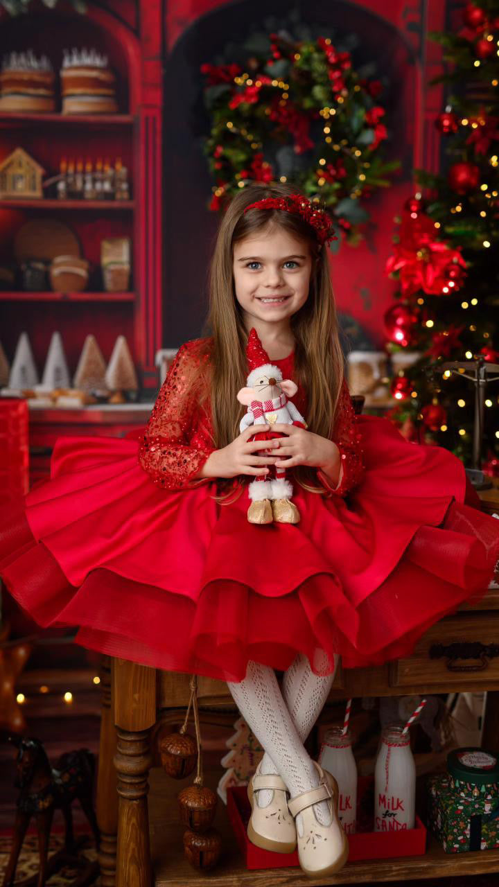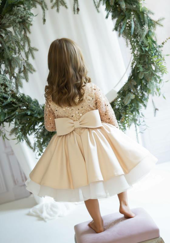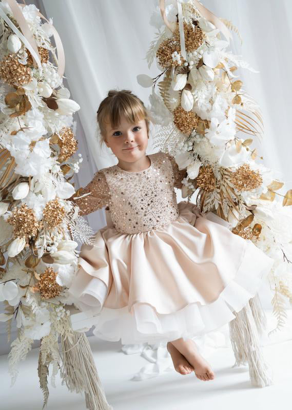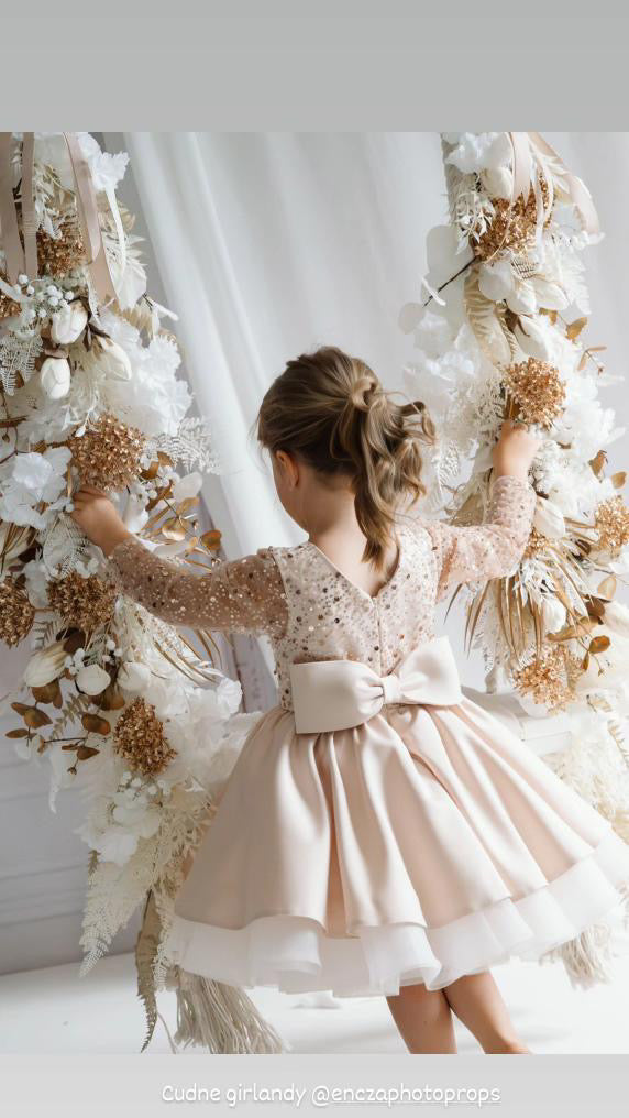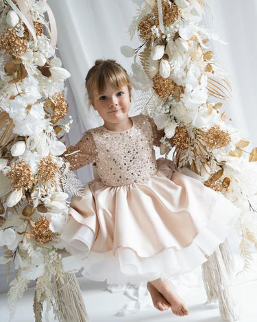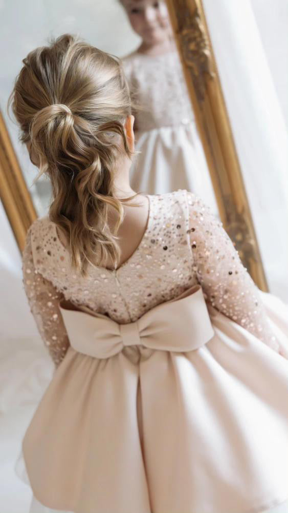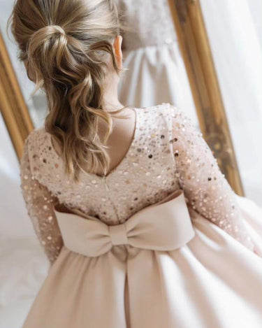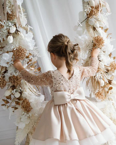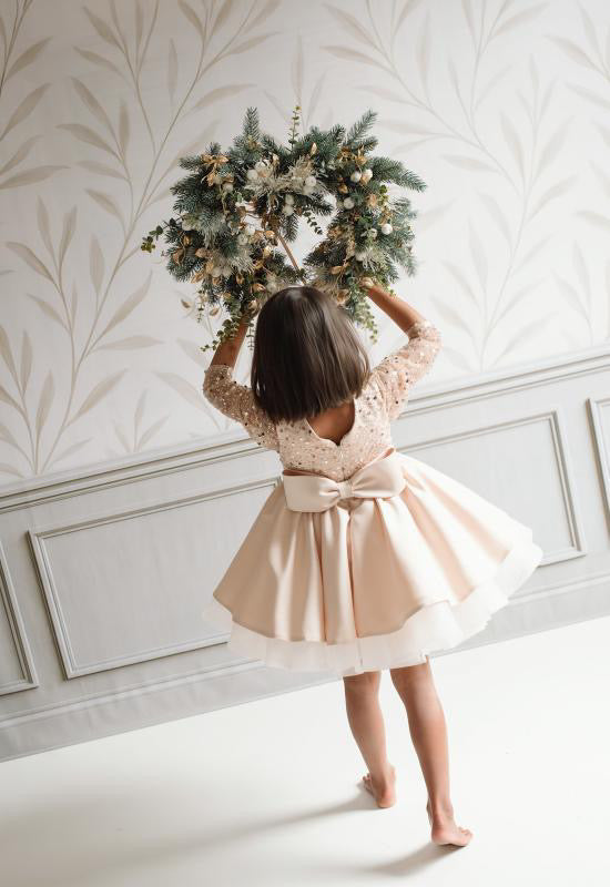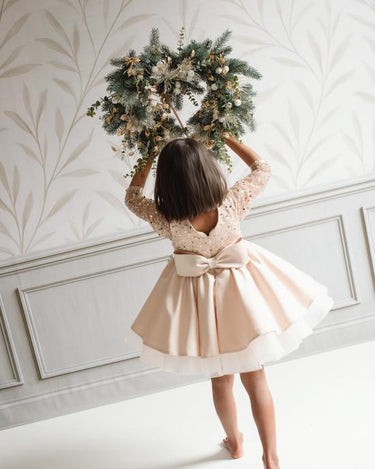 The Christmas Rose is crafted with a hand sequinned bodice, layered satin tulle skirt and an elegant statement bow that makes every little girl feel like she stepped out of a storybook. Designed and handmade in Europe. This timeless dress is perfect for Christmas events, birthdays, flower girl moments, photoshoots and milestone celebrations.