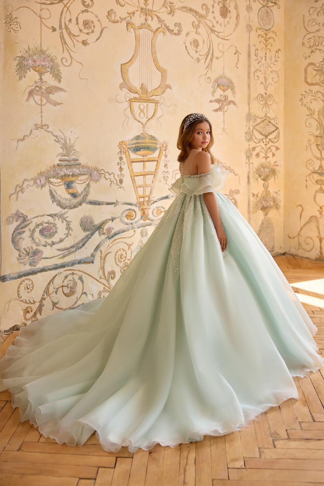 Lightweight and flexible, it sits gracefully on the head without discomfort, making it perfect for flower girls, communions, weddings, birthdays, and milestone celebrations. The subtle shimmer catches the light beautifully, complementing couture gowns while allowing the dress to remain the centrepiece.