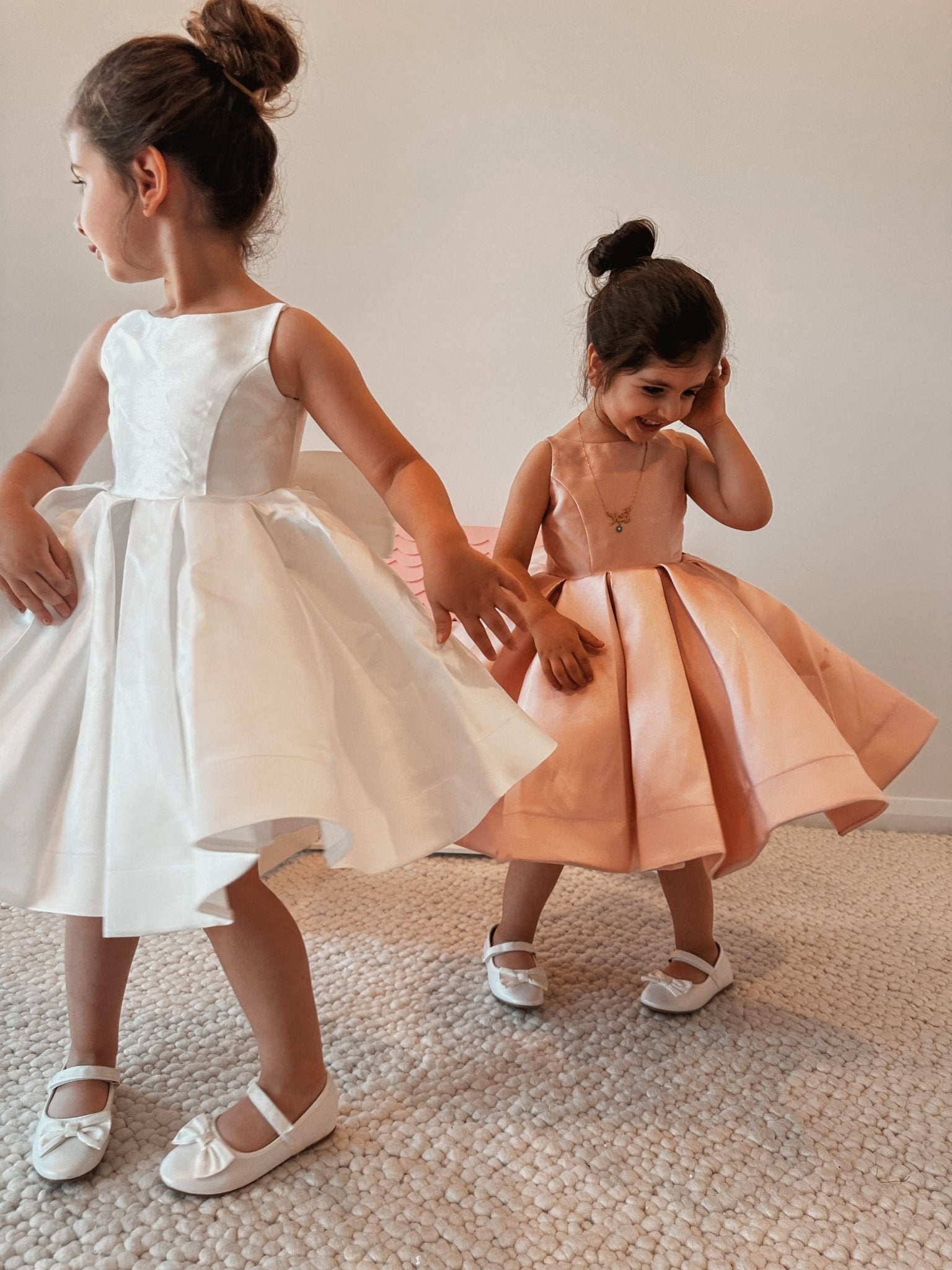 The Majestic Mikado Dress is a luxurious flower girl dress crafted from premium Mikado satin. Known for its rich structure and elegant shine, this dress creates a timeless, couture inspired look fit for weddings, birthdays and special celebrations.