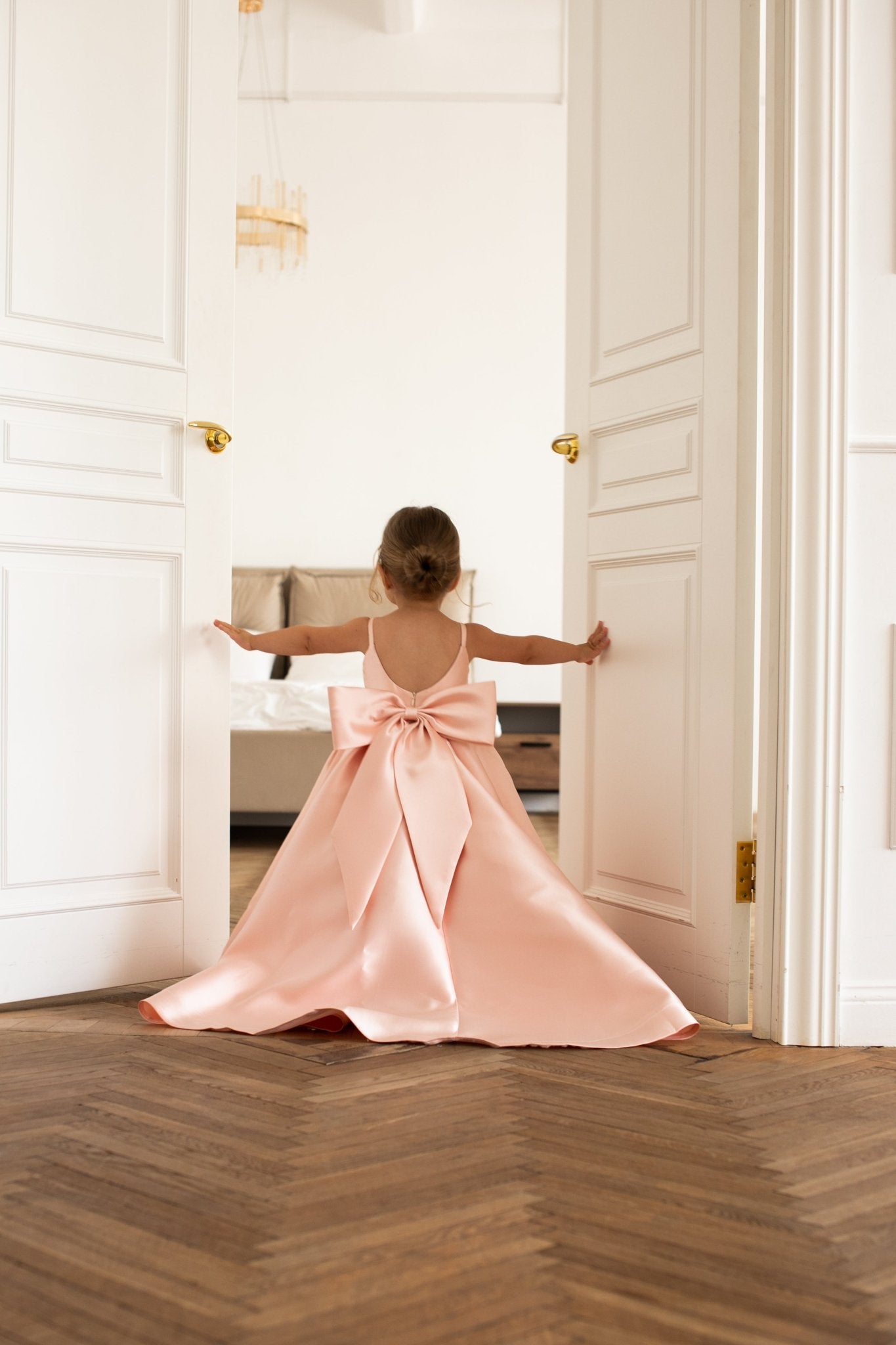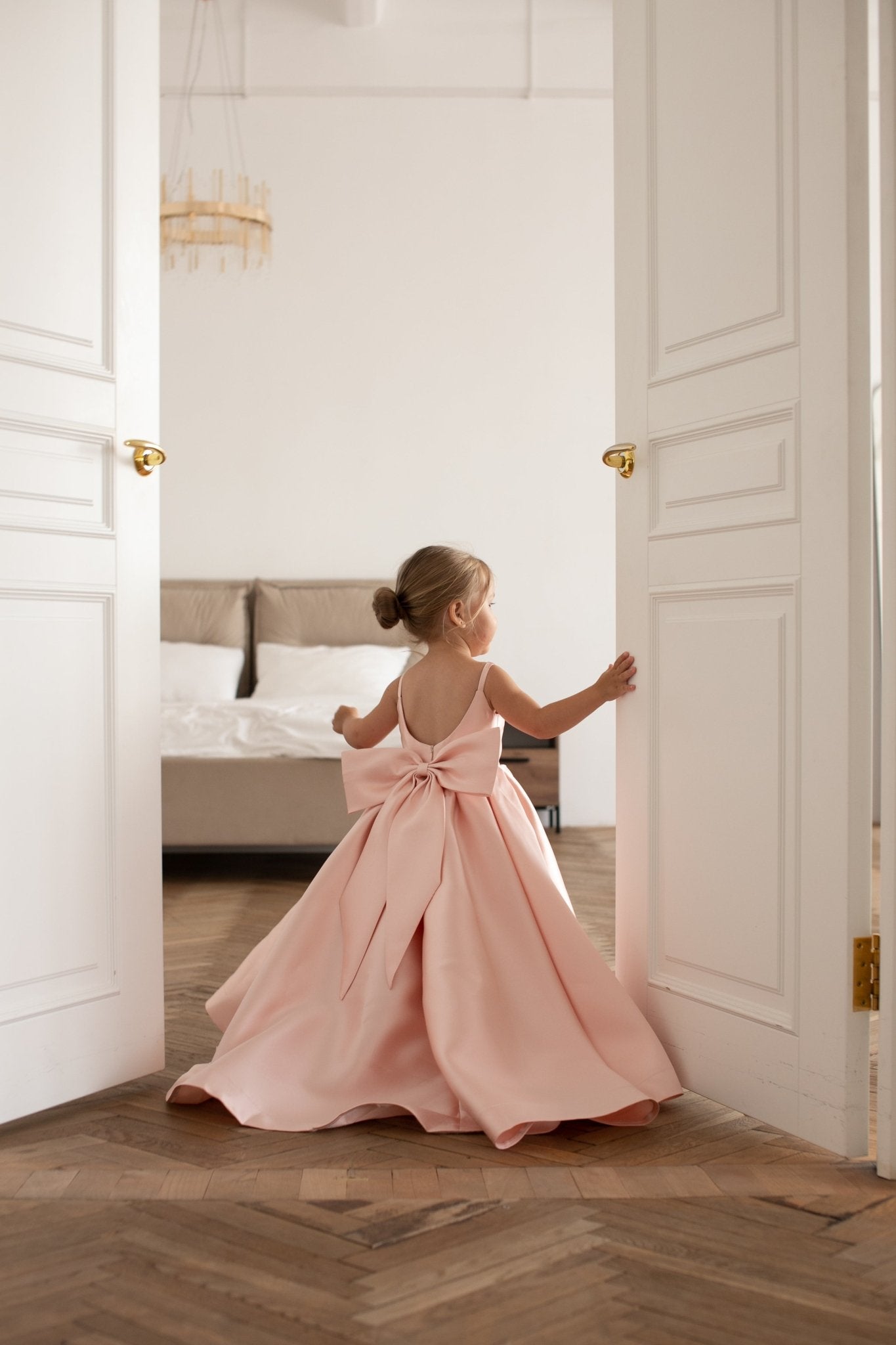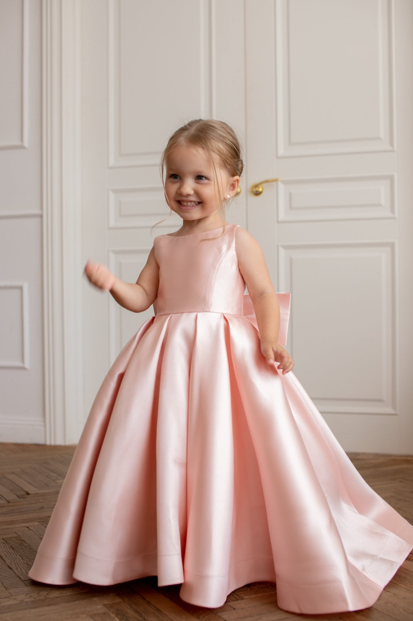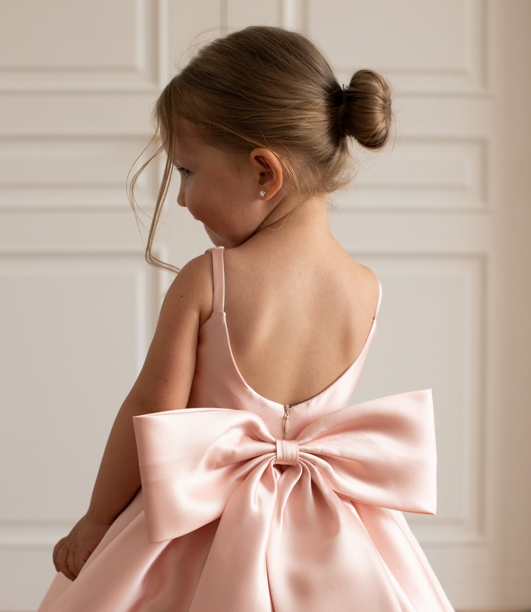 With its structured silhouette and signature oversized bow, this gown is made for unforgettable moments! From weddings to special celebrations where your little one deserves to shine.