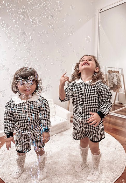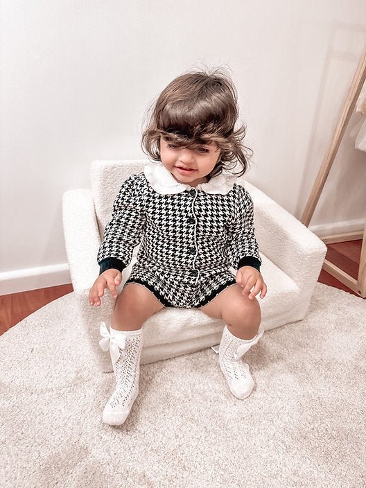 The Maya knit set (cardigan & shorts) is super soft, making it one of our favourite outfits.