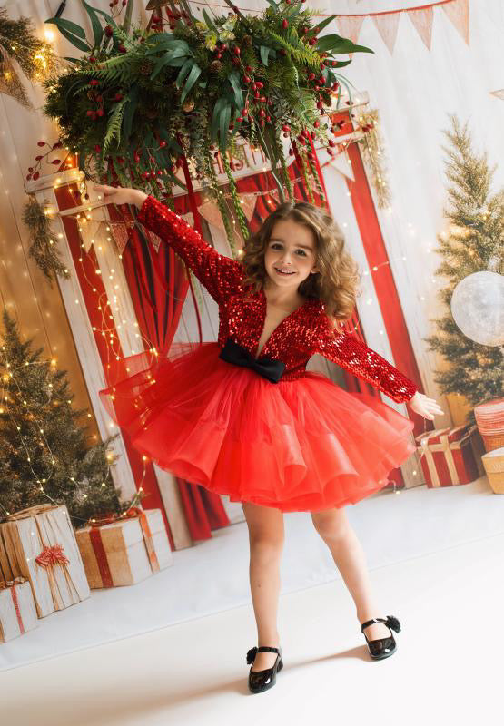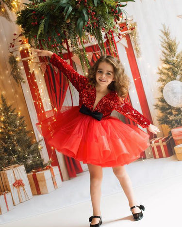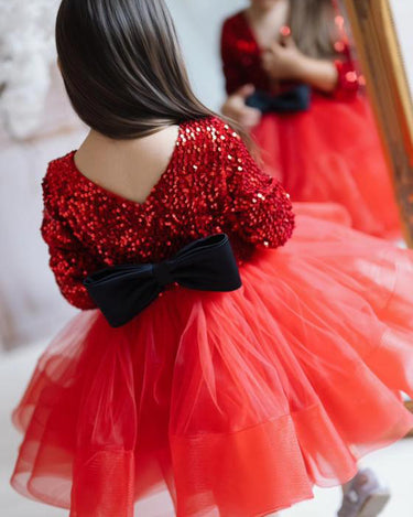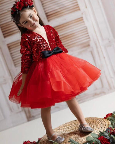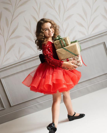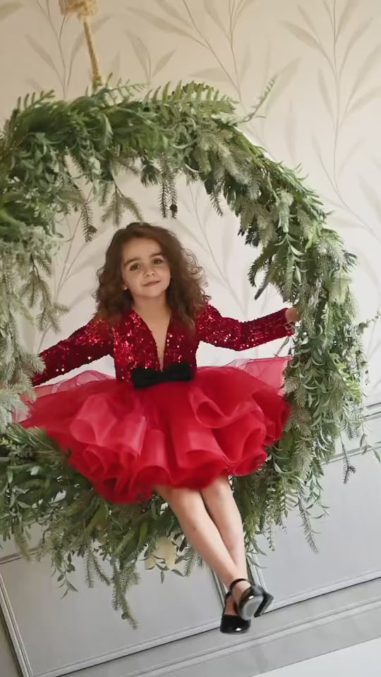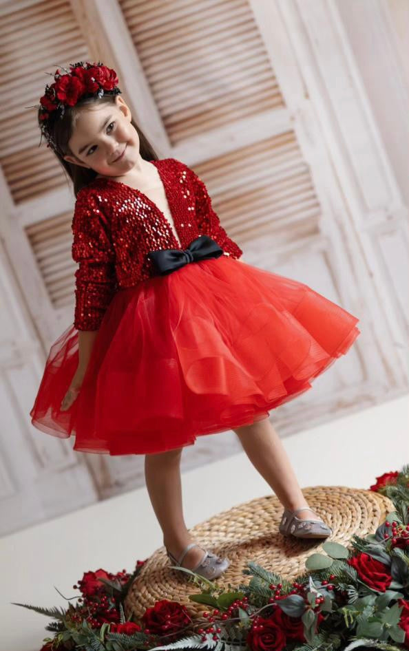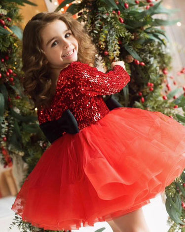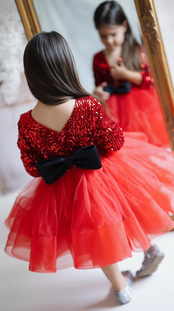 The long sleeves and rich sequin finish give this dress a luxurious feel, while the soft inner lining ensures comfort for little ones from the first twirl to the last.