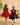 This festive masterpiece features a rich, deep scarlet bodice adorned with hand placed beadwork, creating a sparkling pattern that shimmers like holiday lights. Delicate ruffled sleeves with satin bows add the sweetest feminine touch.