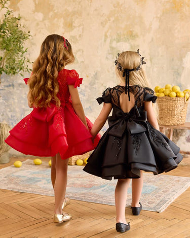 Introducing the Scarlet Whirl Gown. A show stopping Christmas couture dress designed for magical moments, unforgettable photos and every celebration where your little girl wants to shine the brightest.