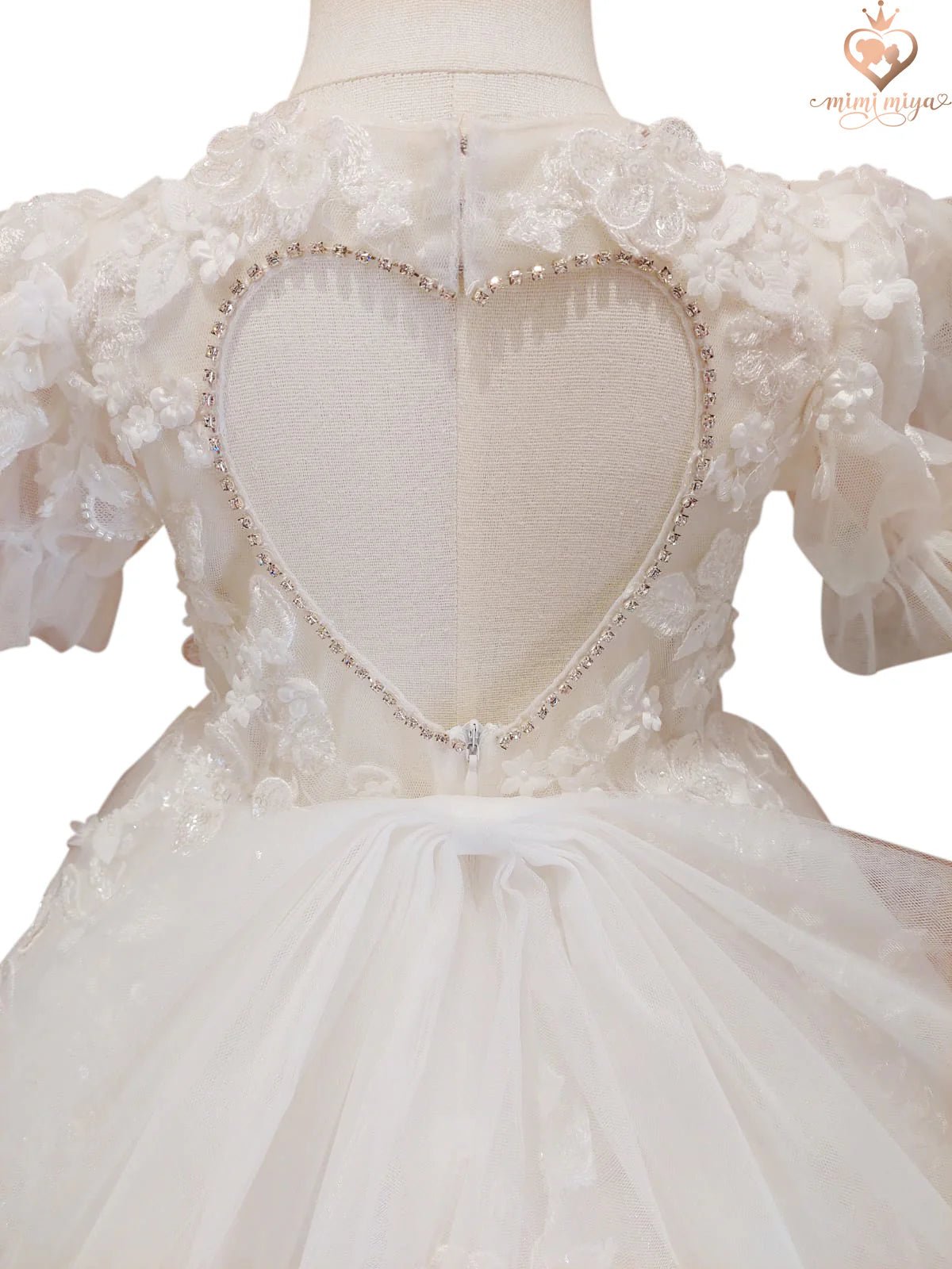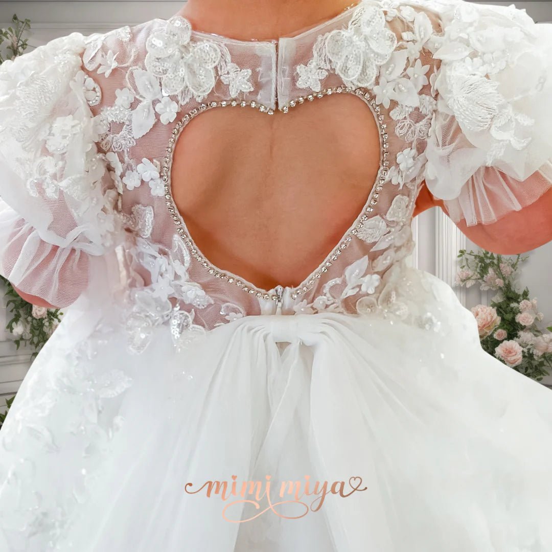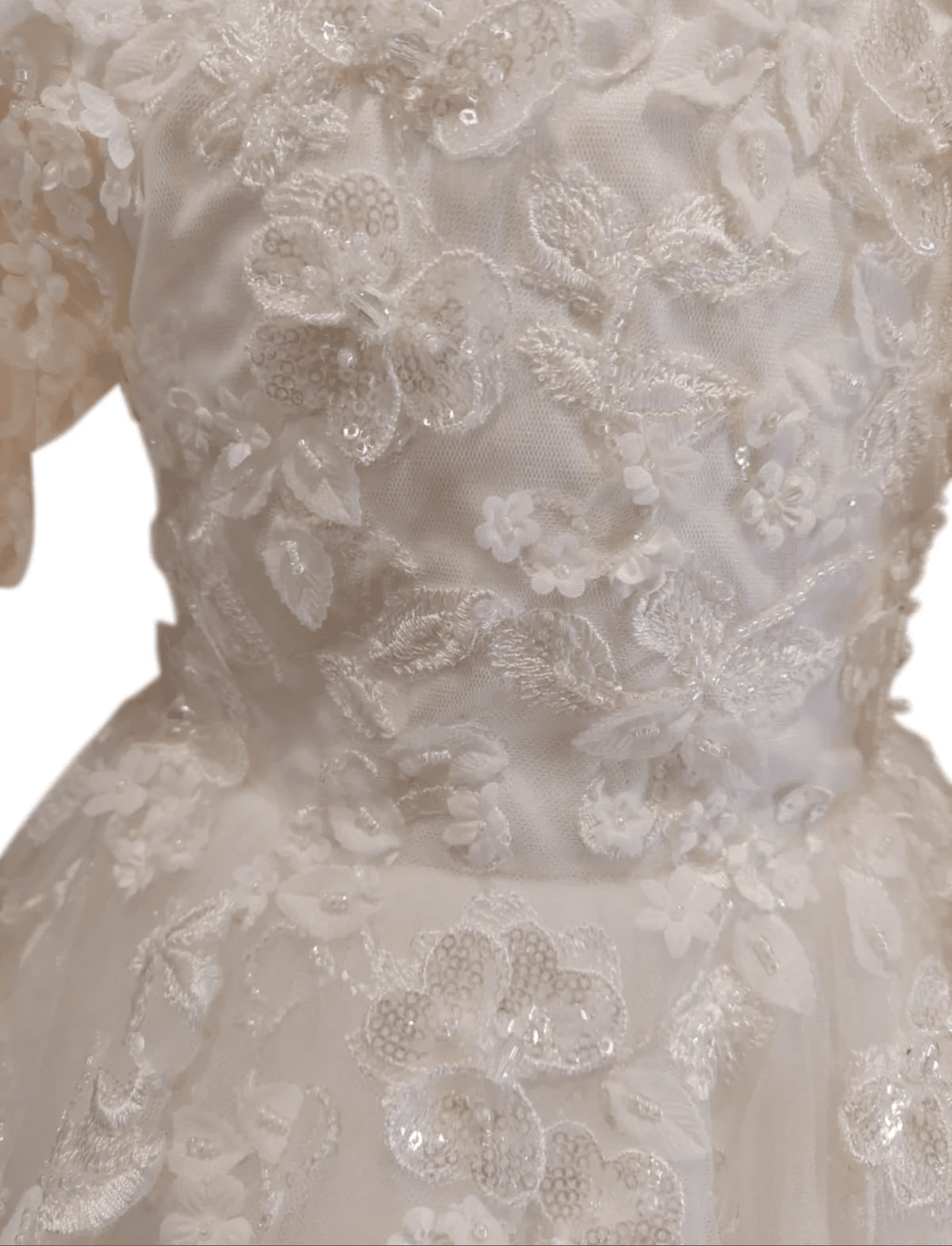 Indulge in our Zeze dress, a masterpiece of embroidery and artistry. Each flower is hand-beaded and expertly crafted, resulting in a unique garment that stands out. The luxurious puffy sleeves, lace 3D floral appliques, intricate beading, and soft tulle fabric all come together to create a dress fit for a princess. Choose from a delicate heart back with crystal embellishments or a fully closed option for a sheer effect. Whichever you choose, the Zeze dress is sure to impress. Make it yours by selecting your preferred size and back option before adding to your cart.
